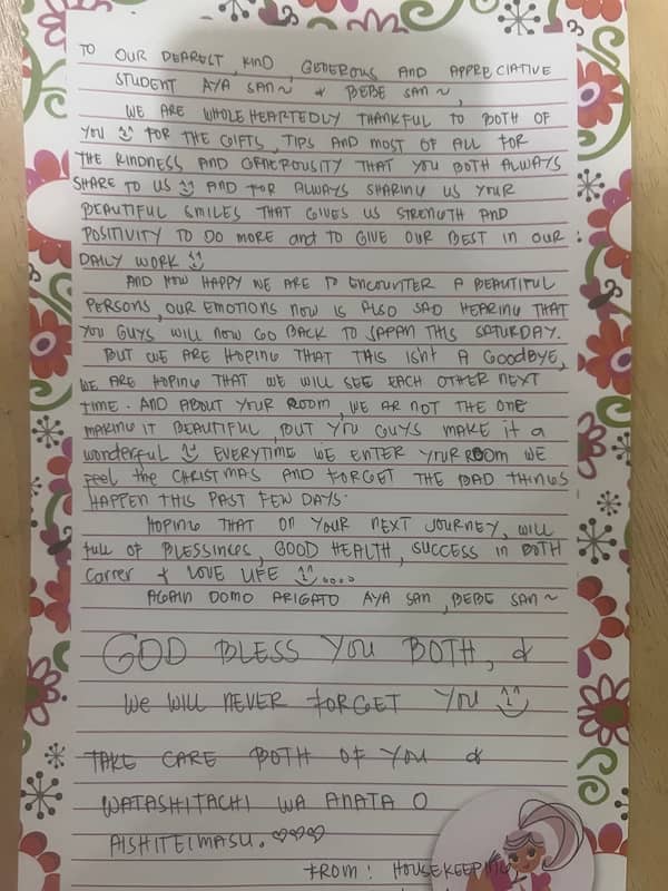 彼女たちも、毎回、私たち姉妹に優しいお手紙を残して下さっていました。 (読んで涙が出ました・・・✨)