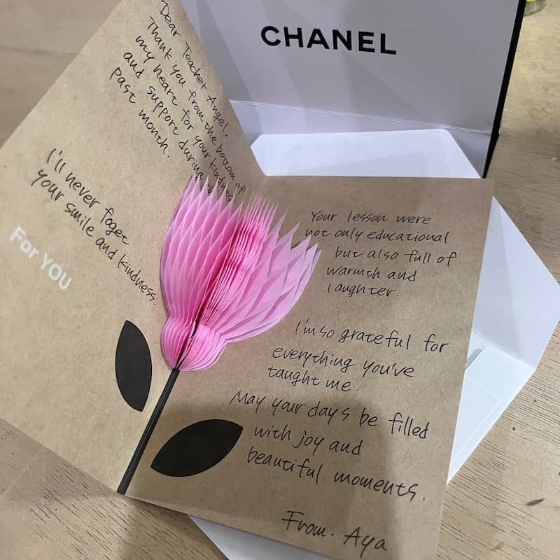 先生へのお手紙とギフト、きっとデスクに飾ってくれてると思う。